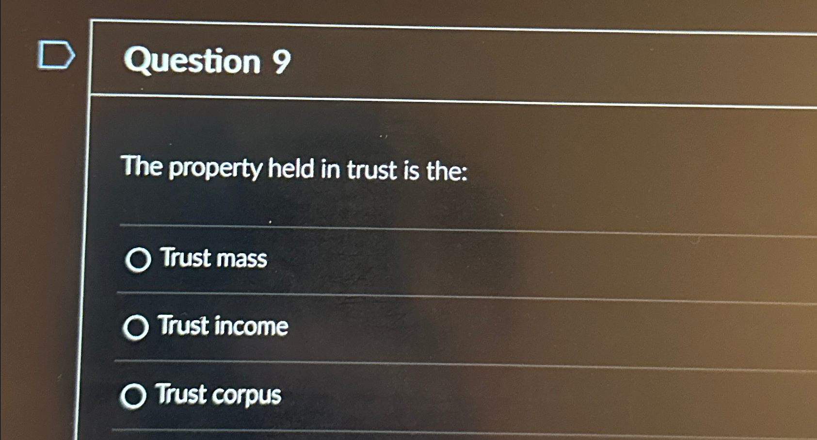 Solved Question 9The property held in trust is the:Trust Chegg com