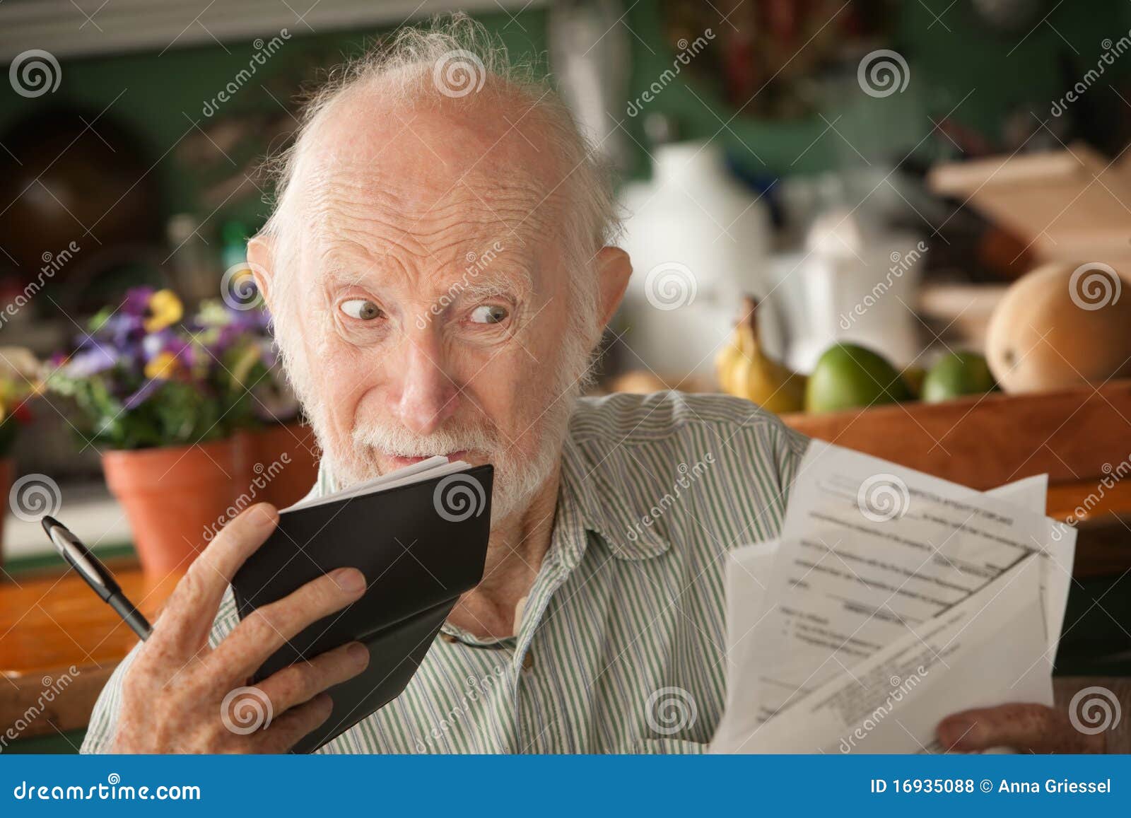 Senior man with many bills stock photo Image of kitchen 16935088