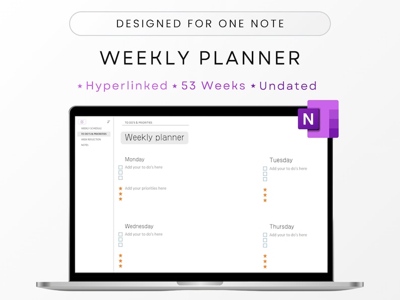 Weekly Onenote Planner Onenote Digital Planner Undated Onenote Weekly