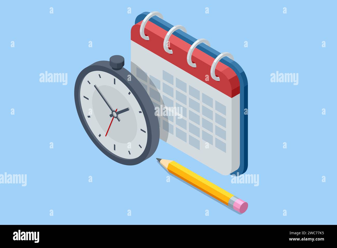 Isometric Reminder Planning Day Scheduling Appointment in Calendar