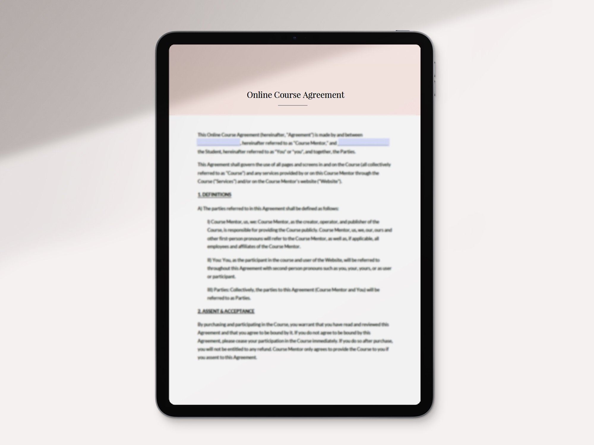 Online Course Agreement WORD PDF template LegalScrolls