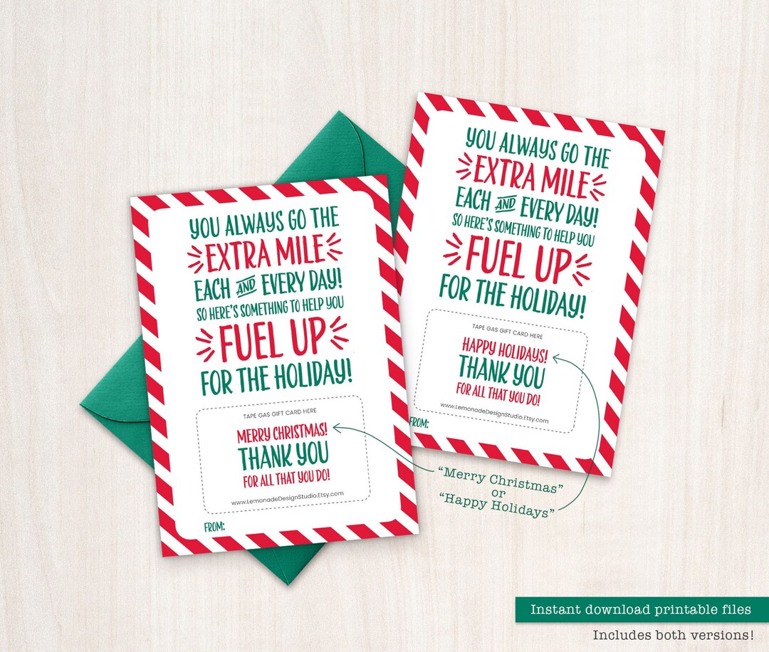 PRINTABLE Gas Gift Card Holder Christmas Gift for Teacher Etsy