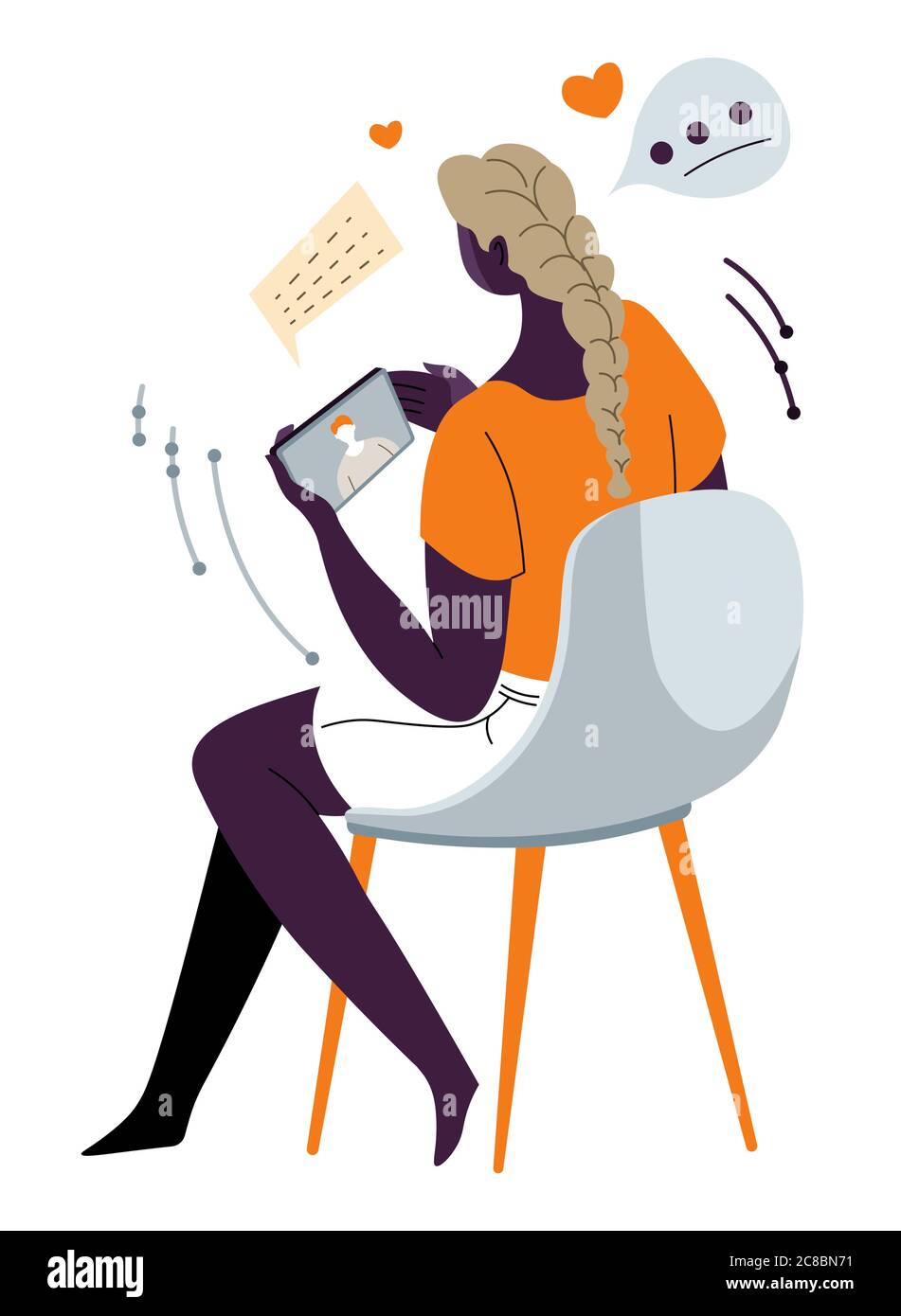 Smiling woman texting online Cut Out Stock Images Pictures Alamy