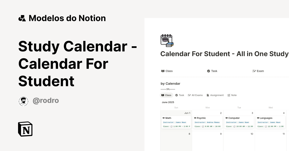 Study Calendar Calendar For Student Modelo por Rodro Marketplace do