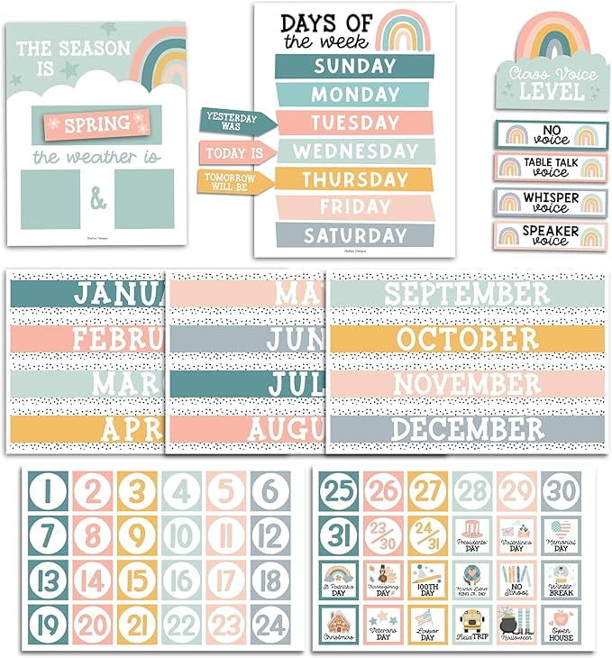 Boho Classroom Calendar Set Bulletin Board Bulletin Board Calendar