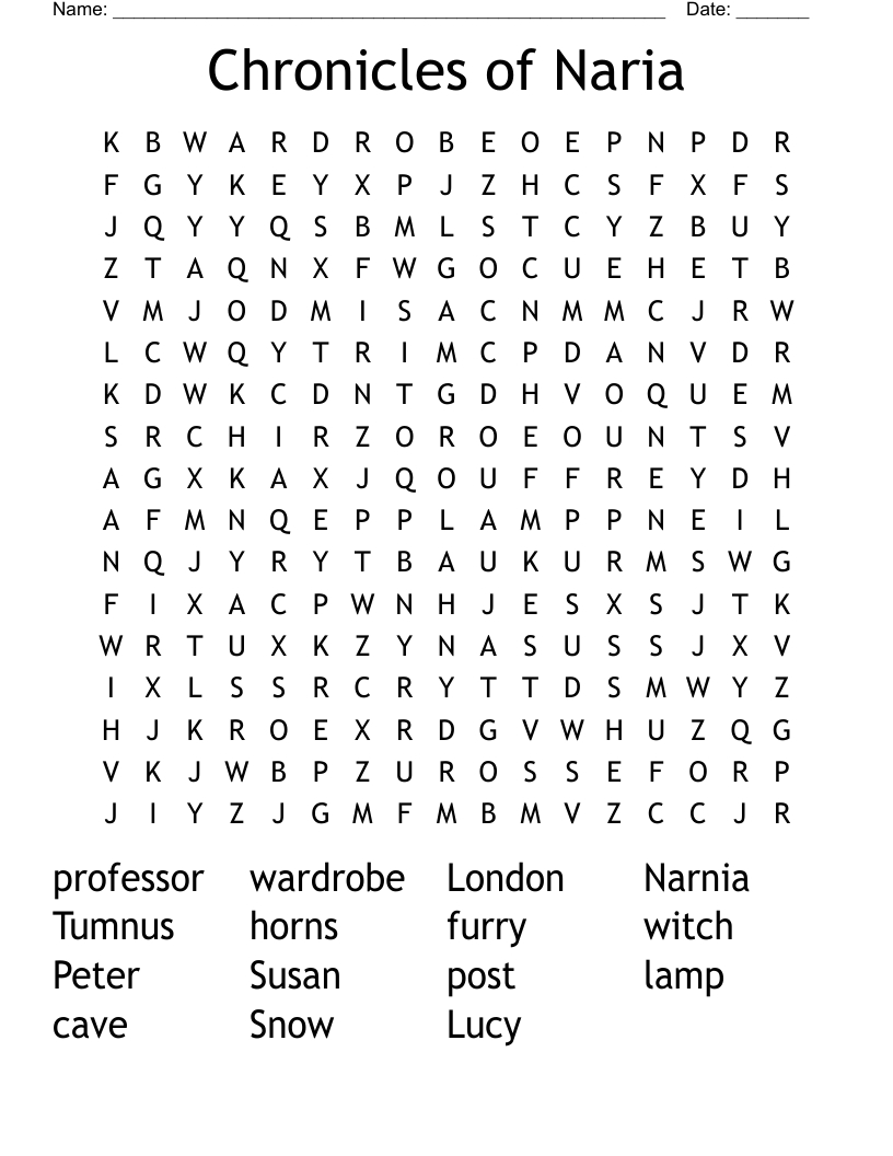 The Lion The Witch and the Wardrobe Word Search WordMint