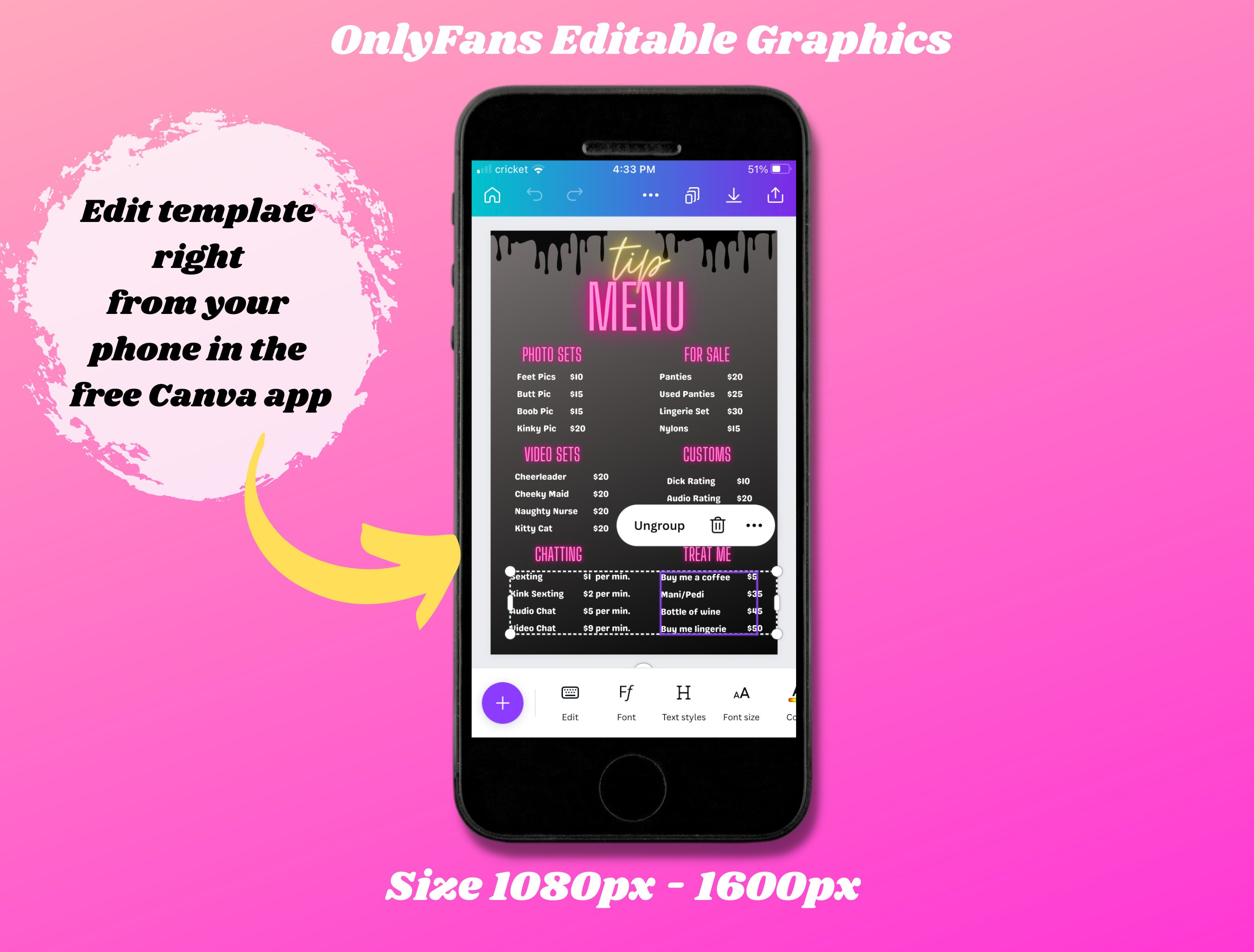 Onlyfans Tip Menu Onlyfans Graphics Editable Canva Templates