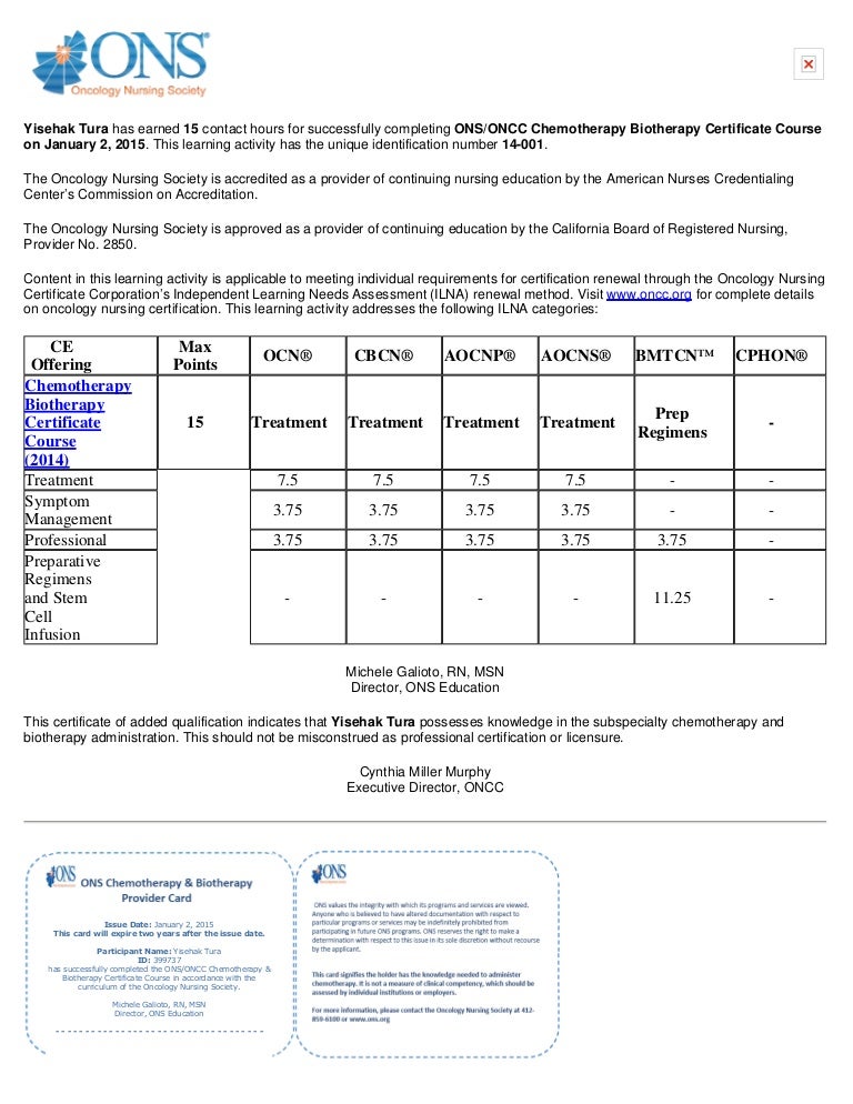 ONS/ONCC Certification/ONS Chemotherapy Immunotherapy Certificate