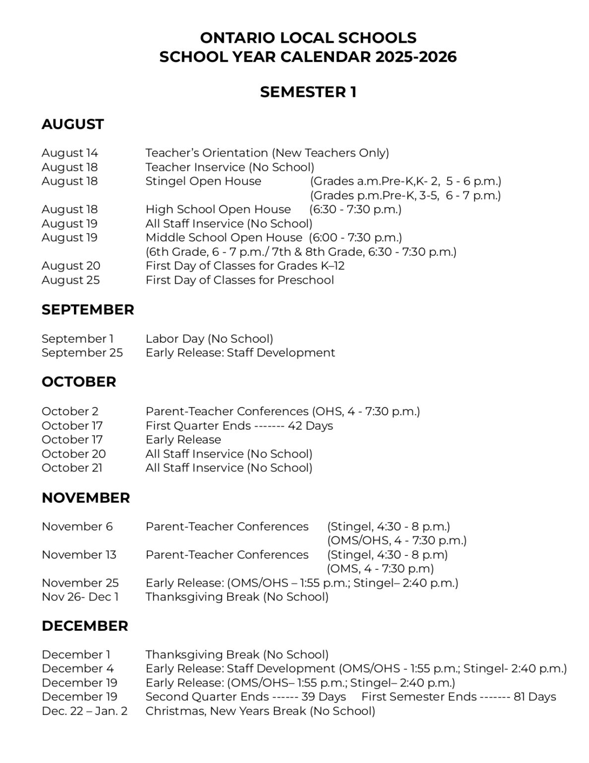 Ontario Local Schools Calendar 25 26 Revised PDF EduCounty