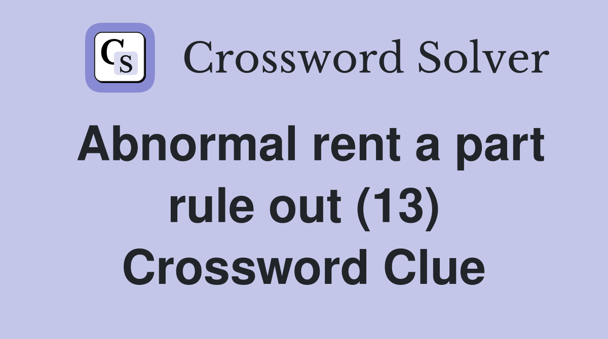 Abnormal rent a part rule out (13) Crossword Clue Answers Crossword