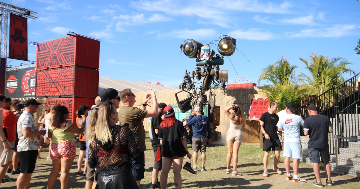 Bas maakte 8 meter grote robot van schroot die als dj Defqon op z n