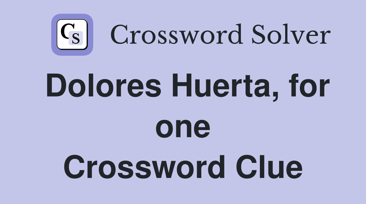 Dolores Huerta for one Crossword Clue Answers Crossword Solver