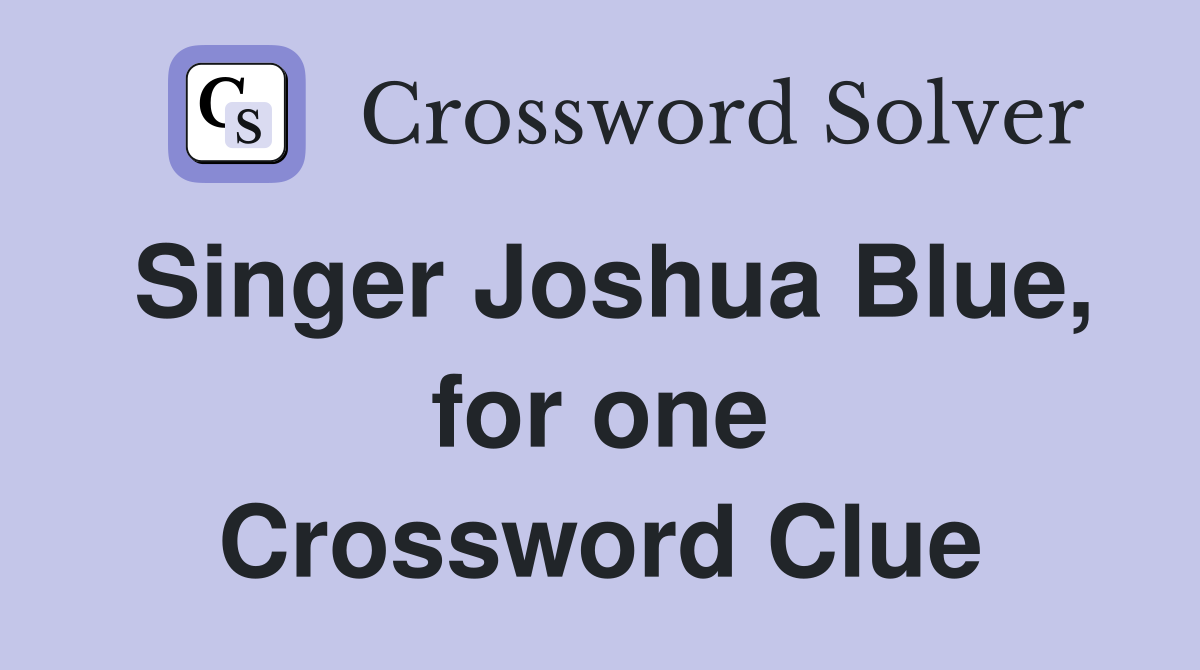 Singer Joshua Blue for one Crossword Clue Answers Crossword Solver
