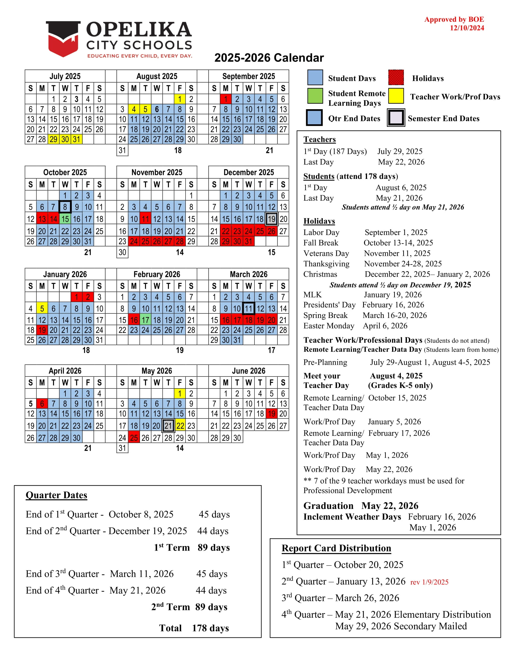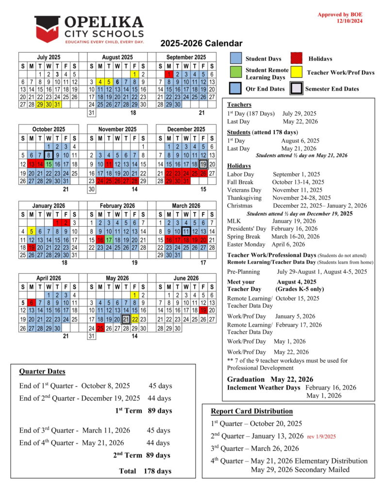 Opelika Public Schools Calendar al 25 26 Revised PDF EduCounty