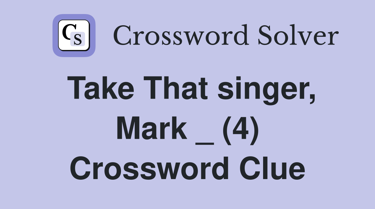 Take That singer Mark (4) Crossword Clue Answers Crossword Solver