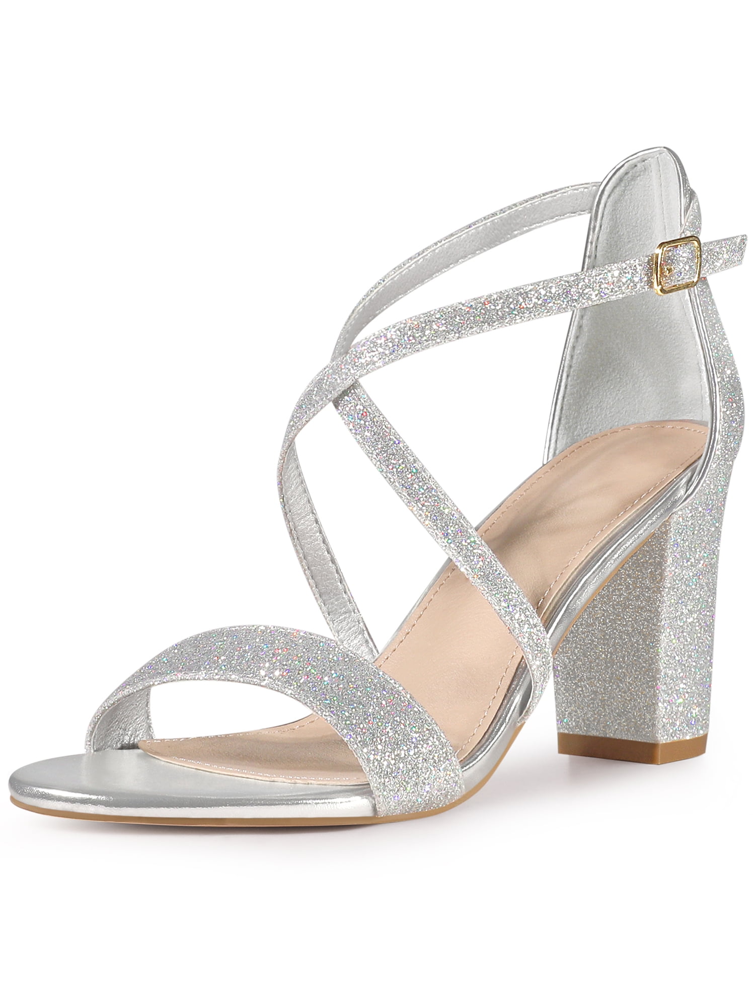 Perphy Glitter Open Toe Crisscross Strap Block Heel Sandals for Women