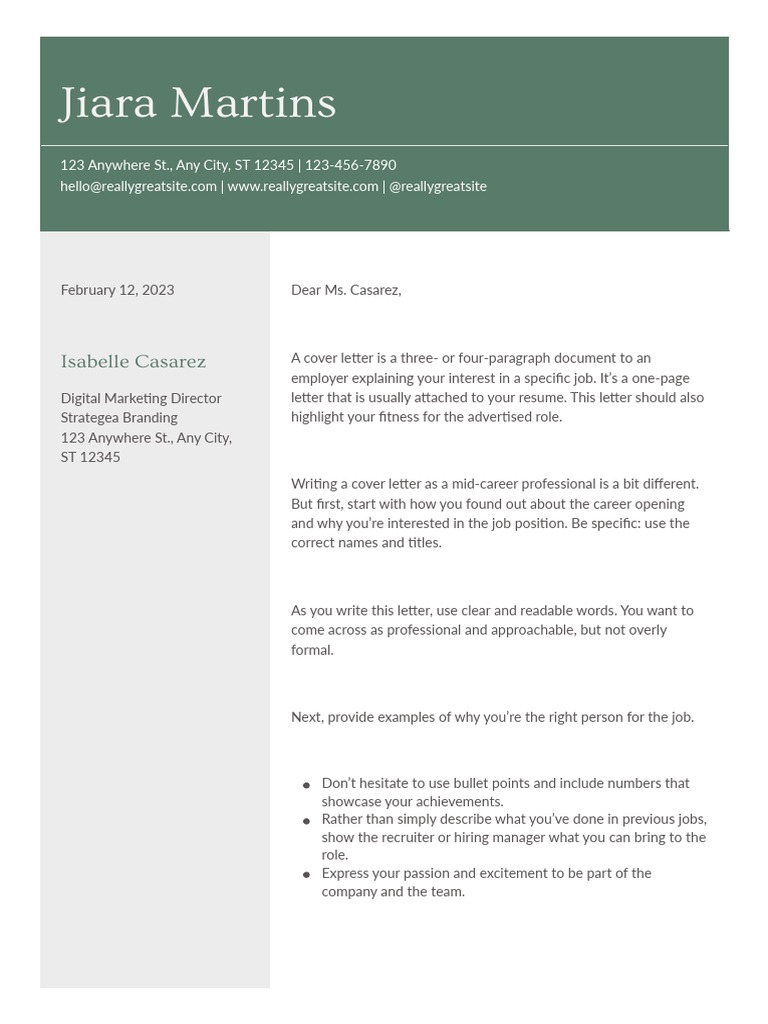 Cover Letter Doc in Green Grey Simple and Minimal Style PDF