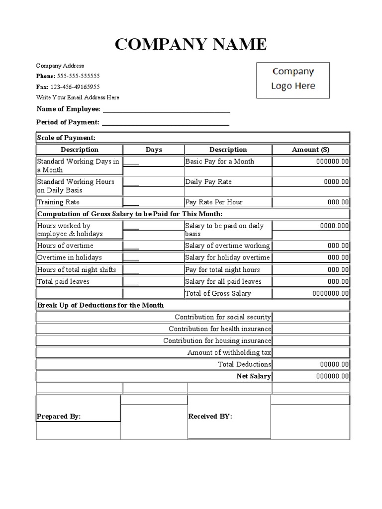 Free Payslip Open Office Template Download Free PDF Salary Overtime