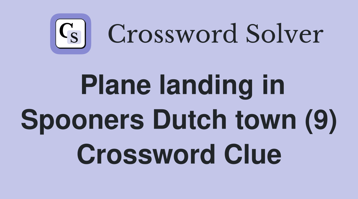 Plane landing in Spooners Dutch town (9) Crossword Clue Answers