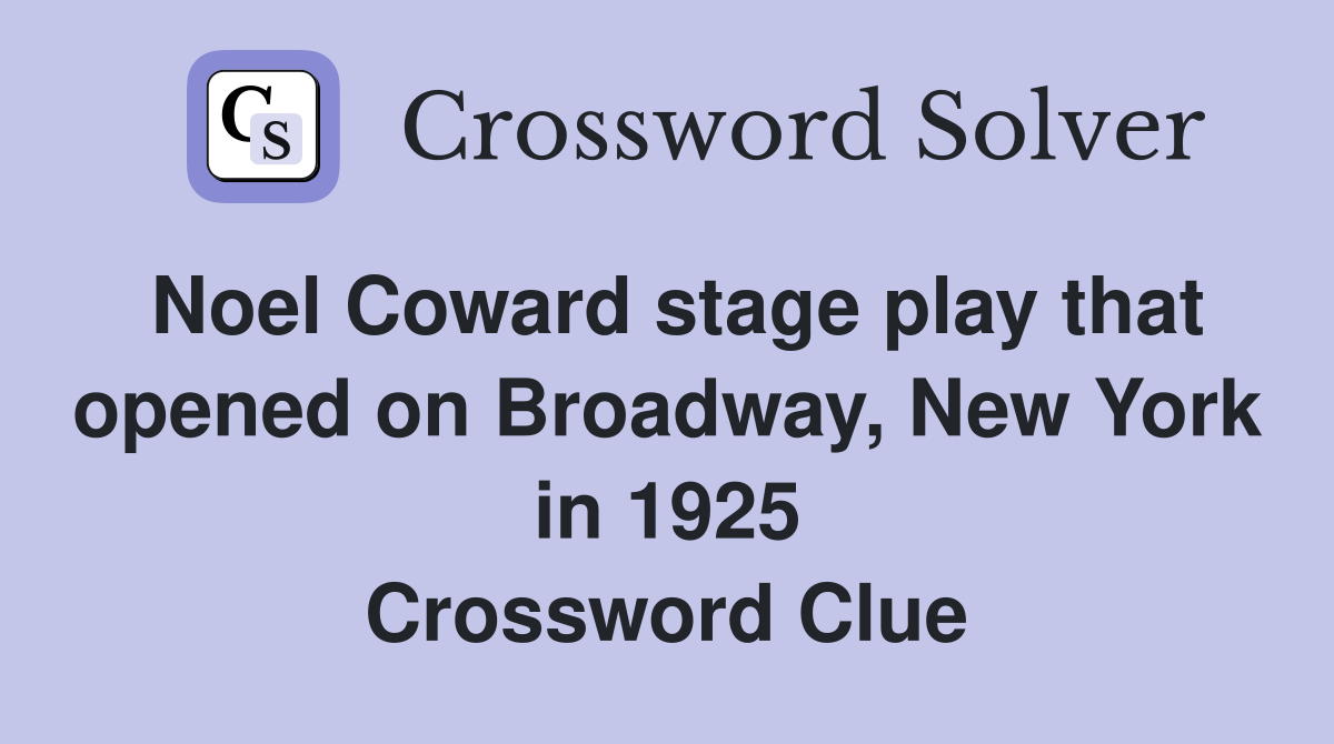 Noel Coward stage play that opened on Broadway New York in 1925