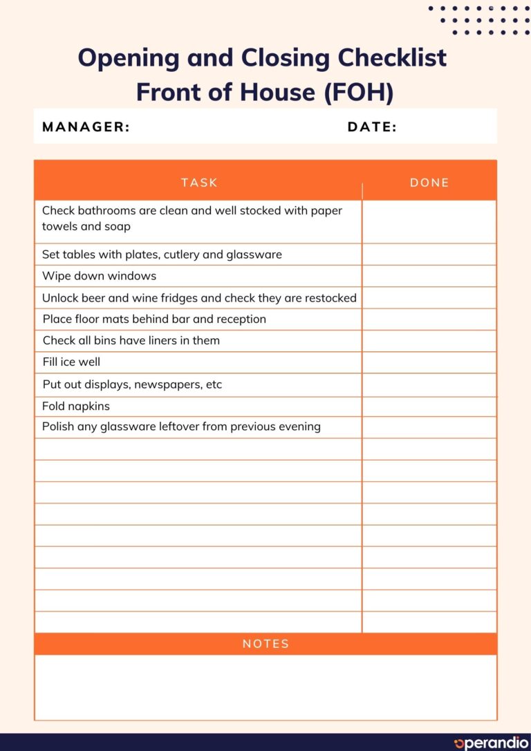 Opening And Closing Checklist Template