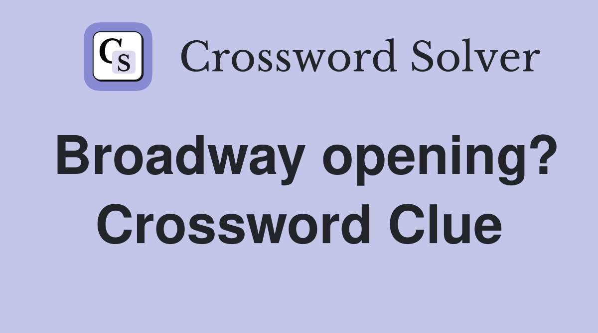 Broadway opening? Crossword Clue Answers Crossword Solver