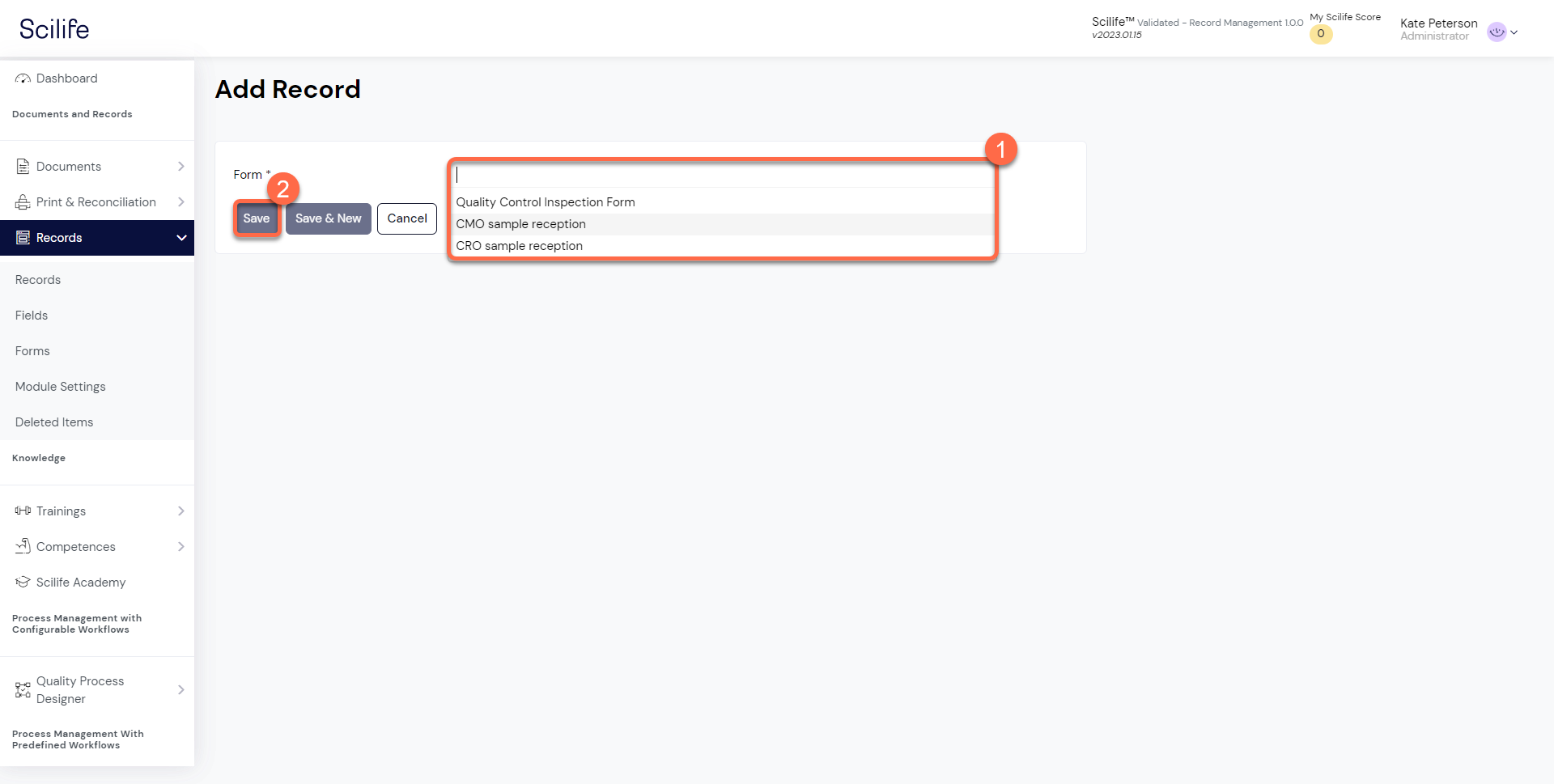 Creating a New Record Scilife