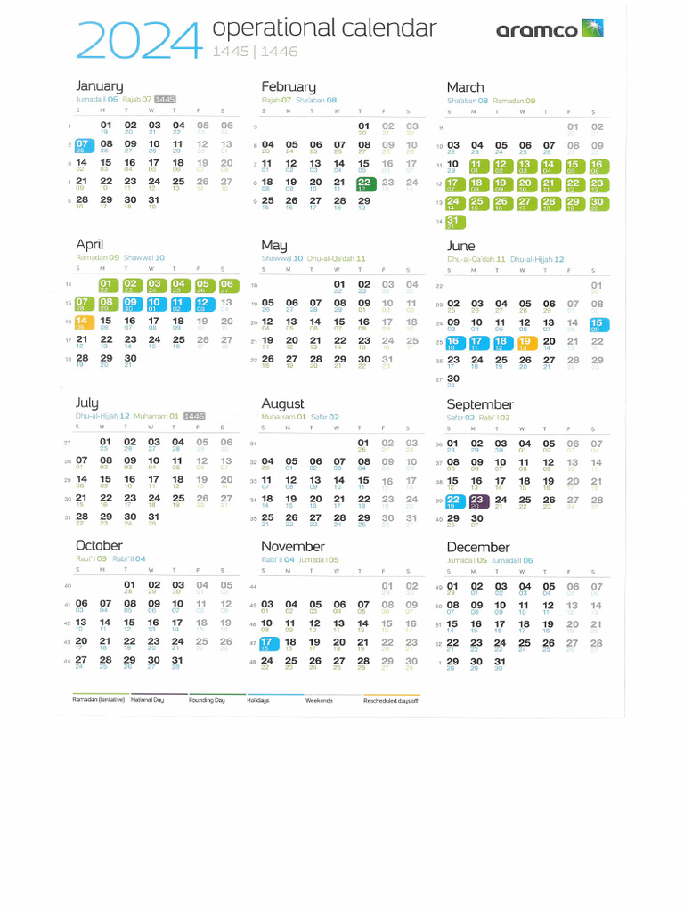 2024 Operational Calendar Aramco Stock Bee Yettie