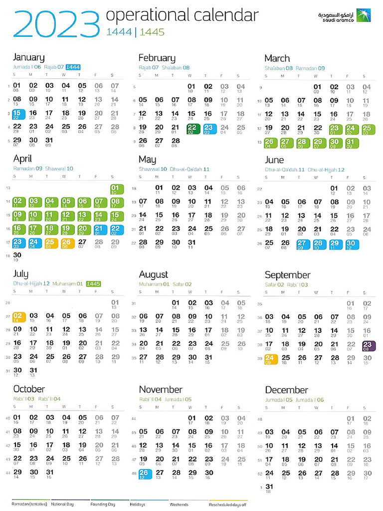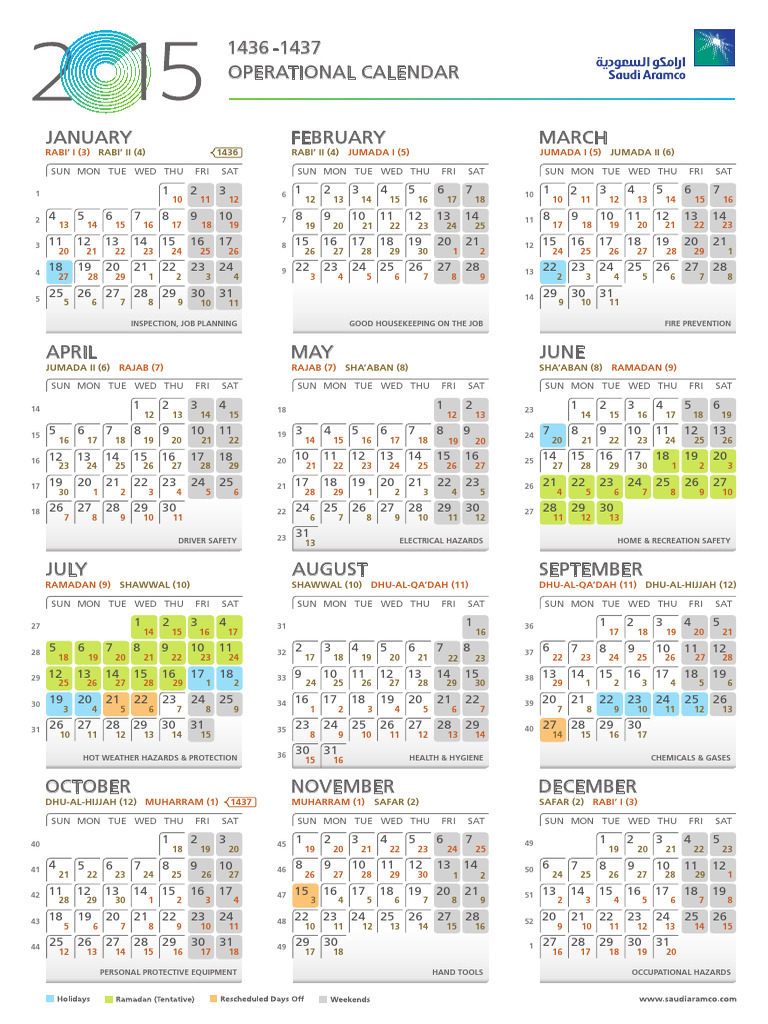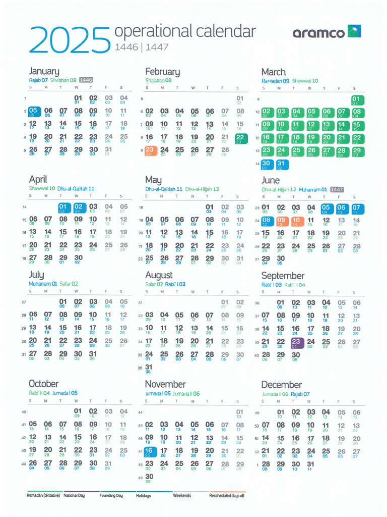 Saudi Aramco Operational Calendar 2025 Doe Shirleen