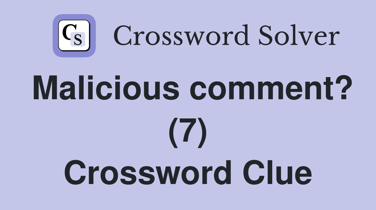 Malicious comment? (7) Crossword Clue Answers Crossword Solver
