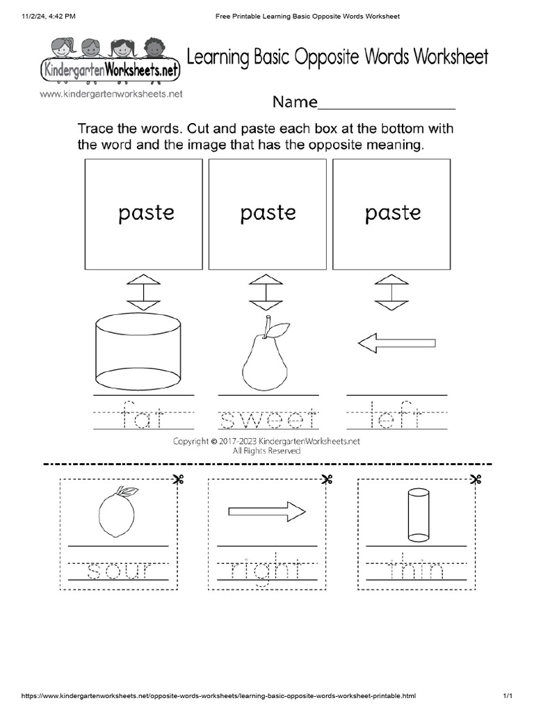 Free Printable Learning Basic Opposite Words Worksheet PDF