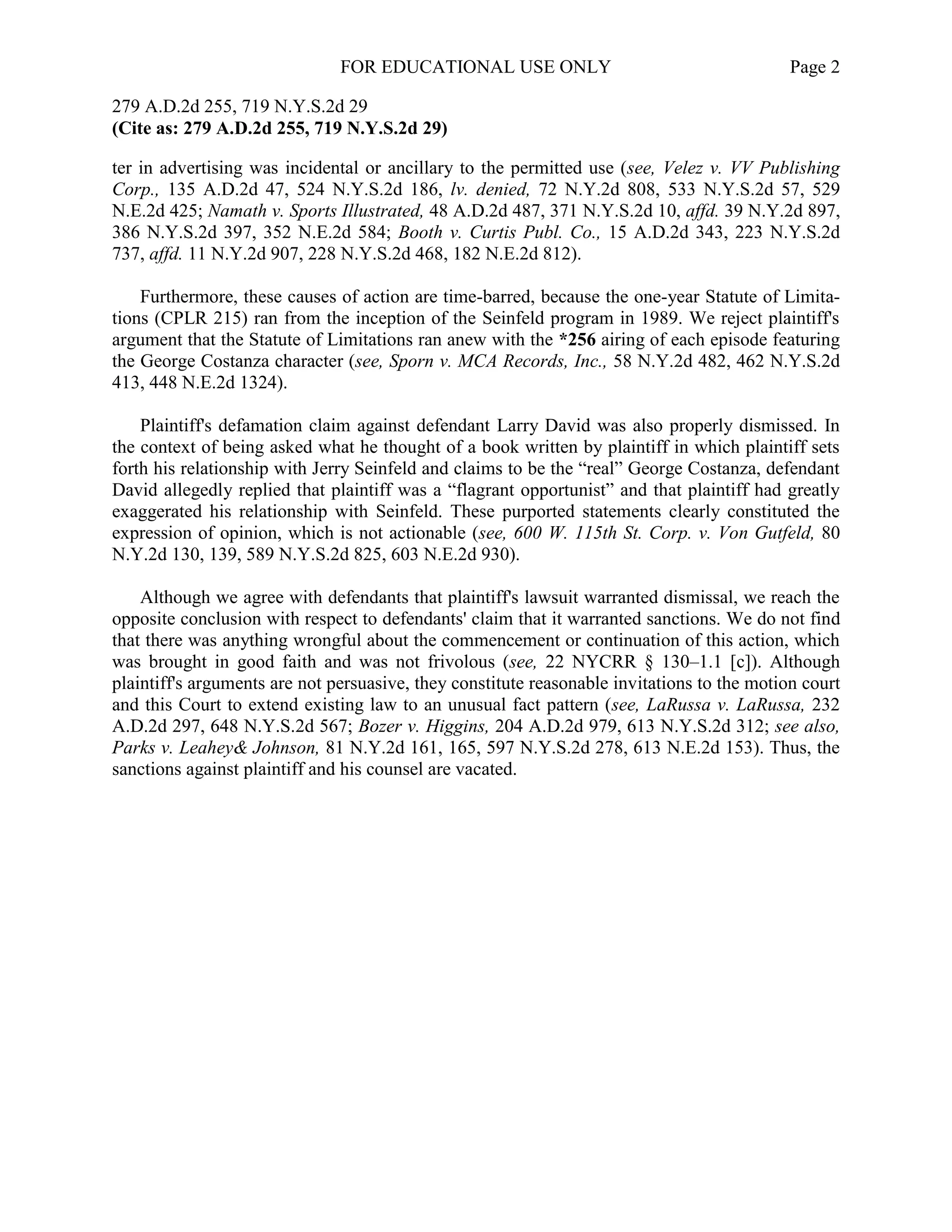Case brief assignment costanza v seinfeld (on appeal) doc