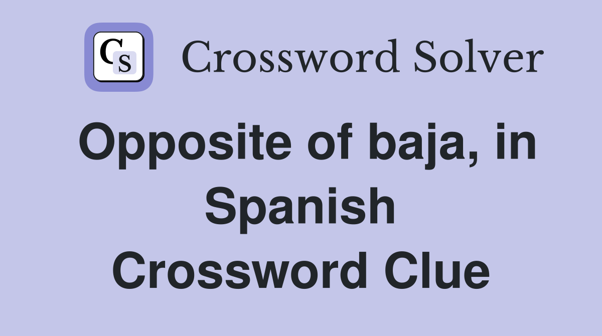 Opposite of baja in Spanish Crossword Clue Answers Crossword Solver
