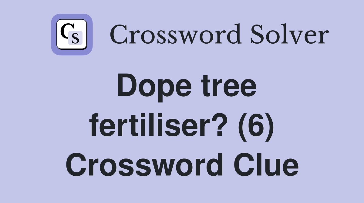 Dope tree fertiliser? (6) Crossword Clue Answers Crossword Solver