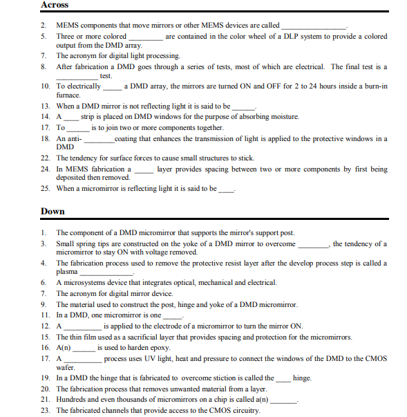 Solved Activity 2: Optical MEMS Crossword Puzzle2 MEMS Chegg com