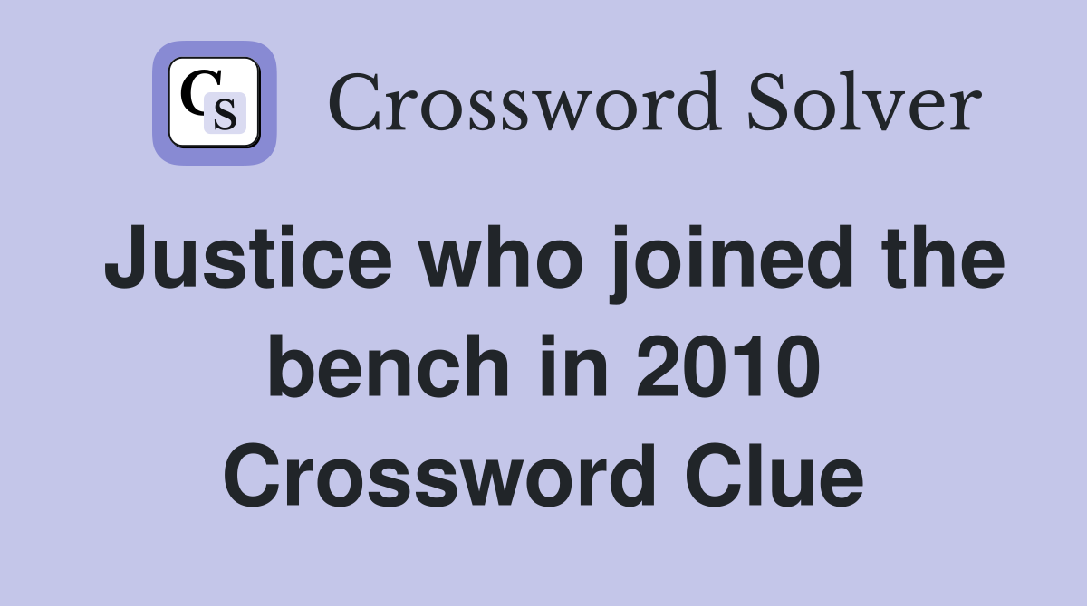 Justice who joined the bench in 2010 Crossword Clue Answers