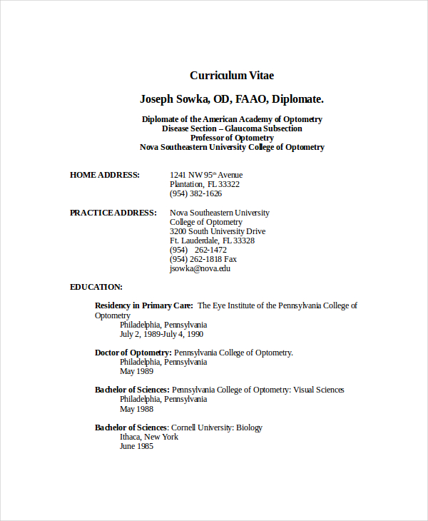 Optometrist Doctor Resume Templates Edit Online Download Example