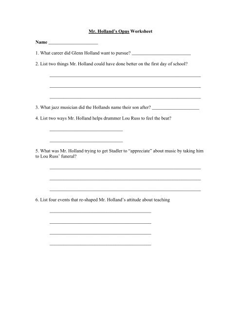 Mr Hollands Opus Worksheet Name LSHS Worksheets Library