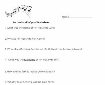 ASL Mr Hollands Opus Questions by ConnectTeachLearn worksheets library