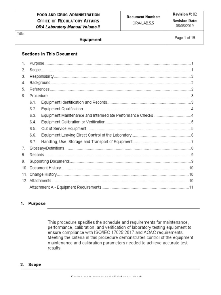 ORA LAB 5 5 Equipment v02 PDF Calibration Verification And Validation