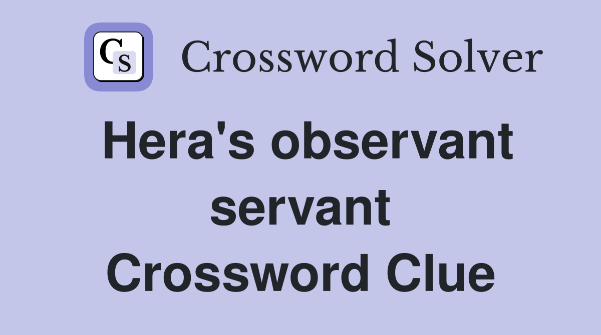 Hera #39 s observant servant Crossword Clue Answers Crossword Solver