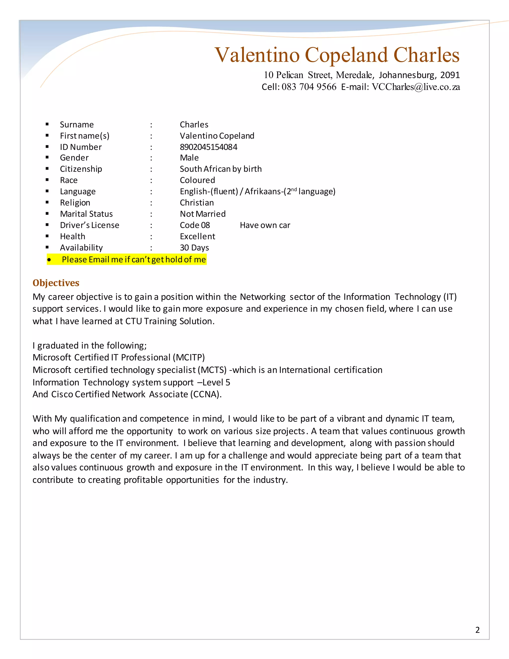 Valentino CV DOCX