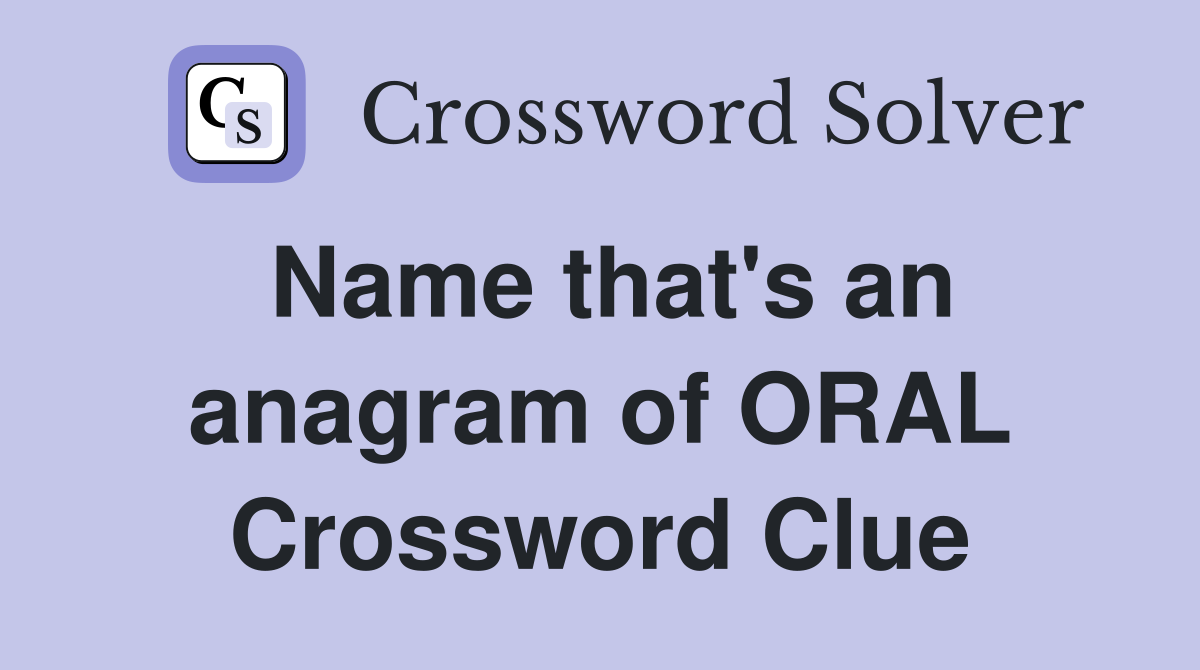 Name that s an anagram of ORAL Crossword Clue Answers Crossword Solver