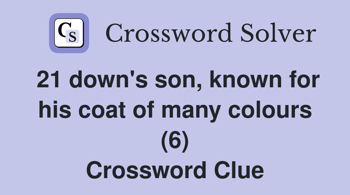 21 down s son known for his coat of many colours (6) Crossword Clue