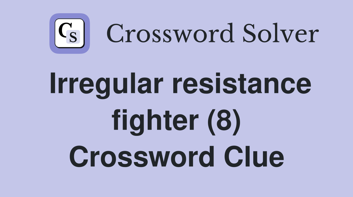 Irregular resistance fighter (8) Crossword Clue Answers Crossword