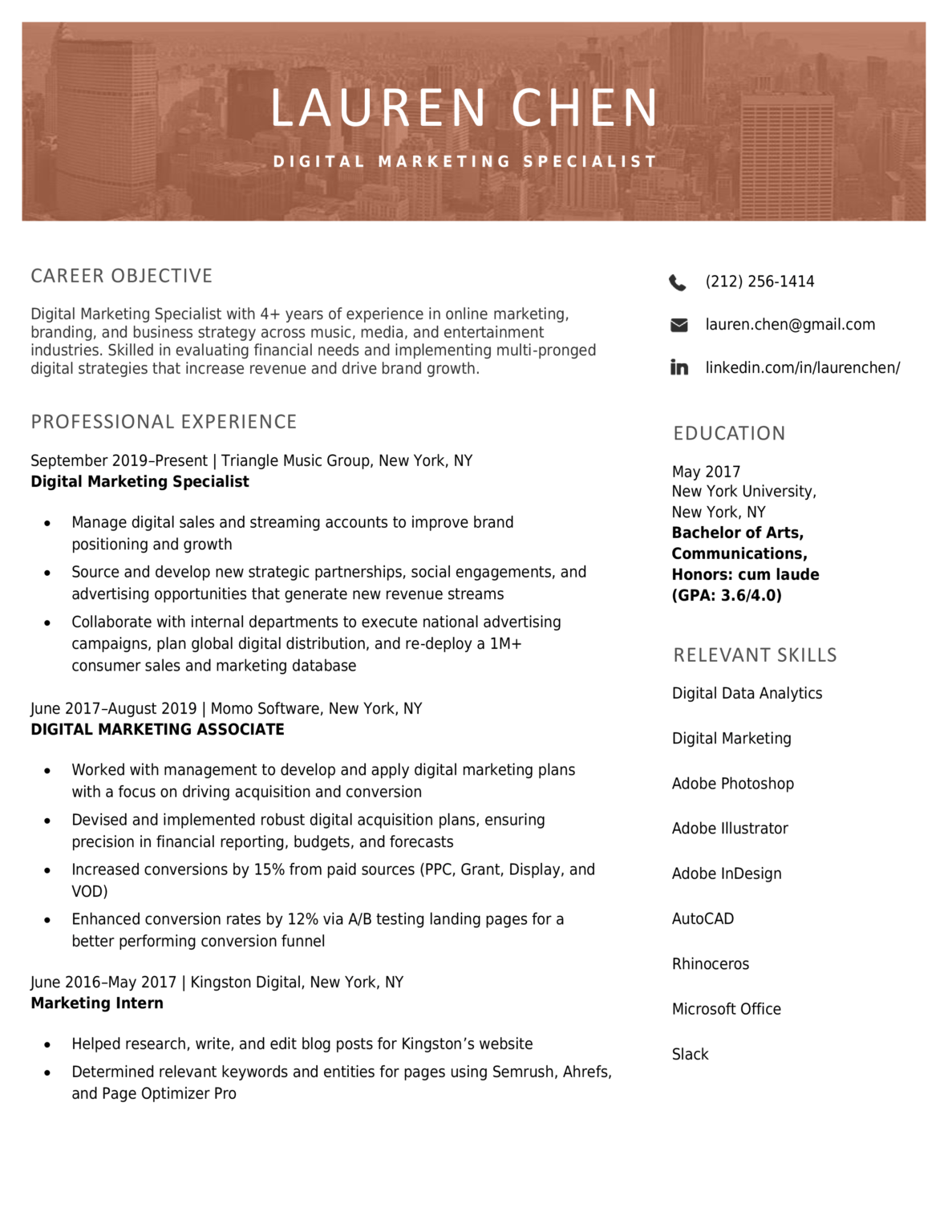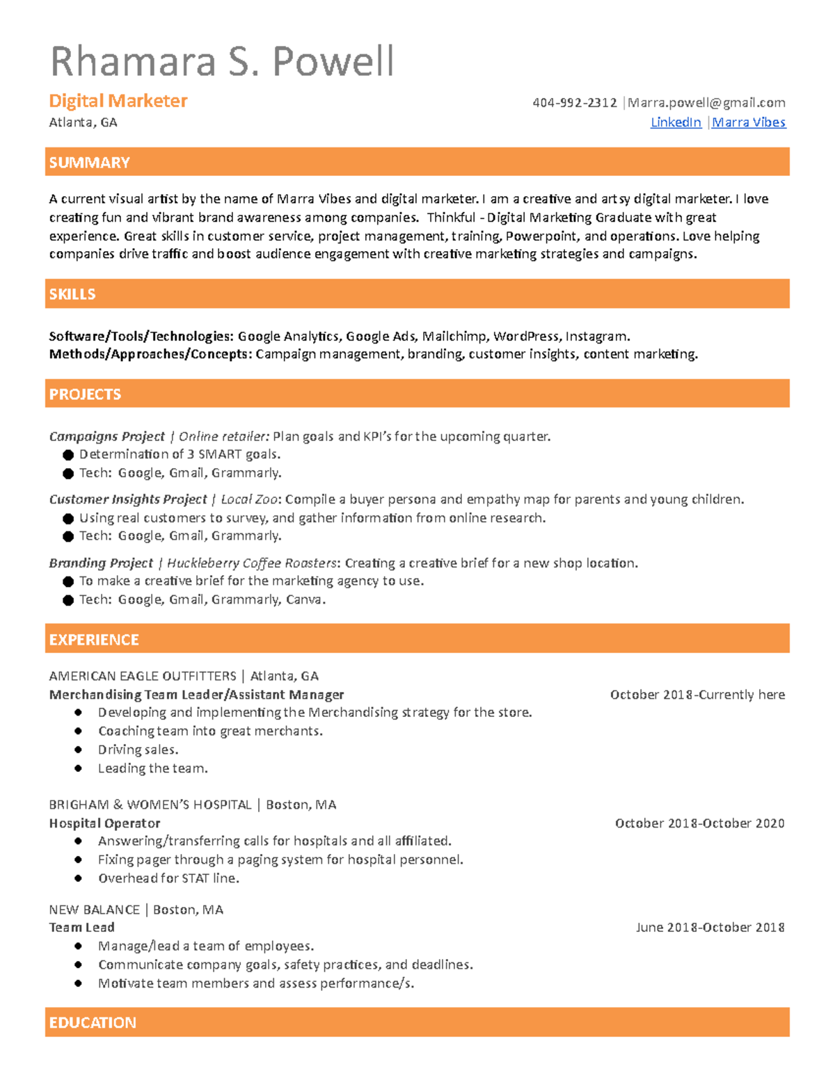 Modern Orange Resume Template Rhamara S Powell Digital Marketer 404