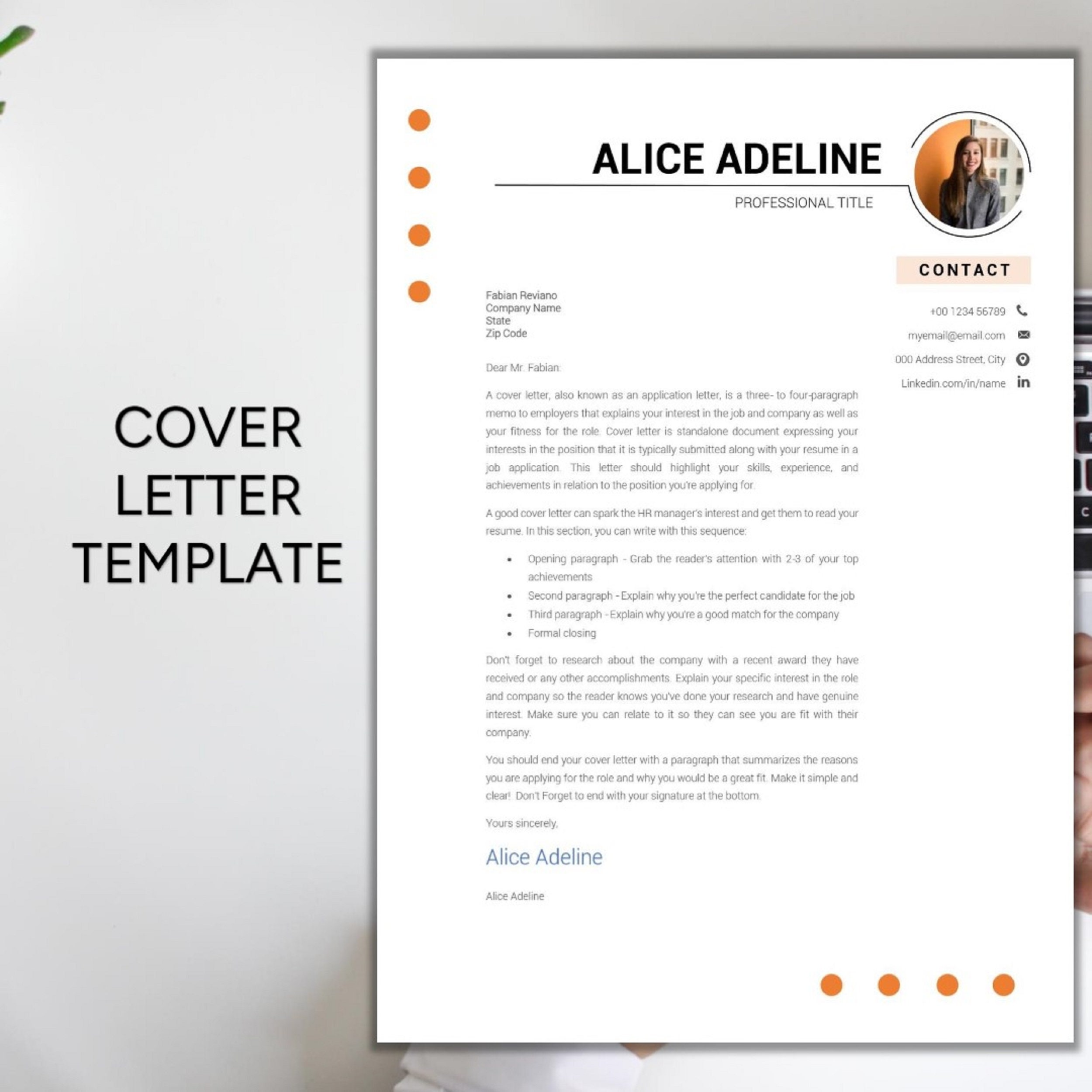 TOBIAS Modern Orange Resume Template ResumGO