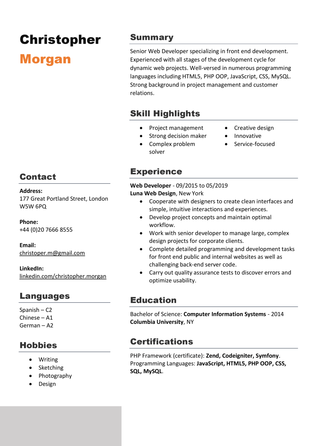 Free: resume template dark orange nohat cc