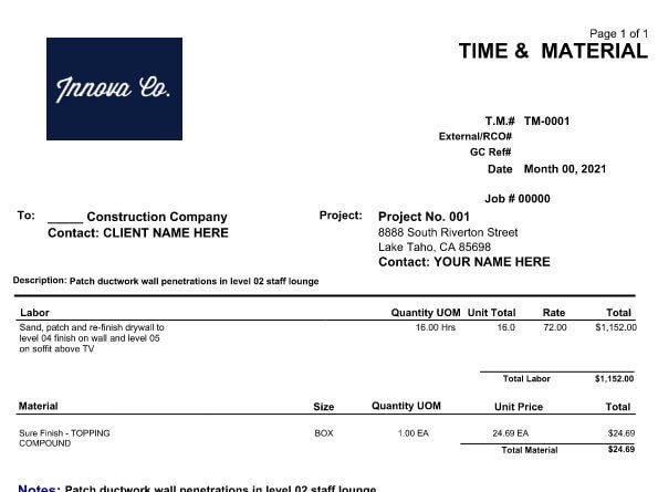 Simple Extra Work Order Ticket Template T M Template Handyman Time