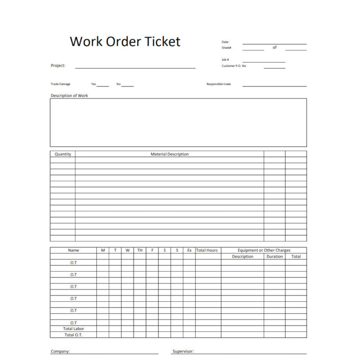 Simple T M Template Extra Work Order Ticket Template vrogue co